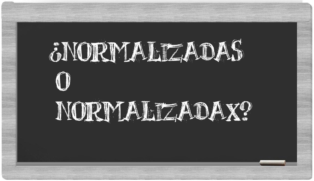 Cuando se presenta la elección entre el término normalizadas y el término normalizadax, no deberías experimentar incertidumbre, puesto que únicamente normalizadas se encuentra debidamente registrado en el Diccionario de la Real Academia Española, mientras que normalizadax carece de reconocimiento oficial en dicho compendio lingüístico.