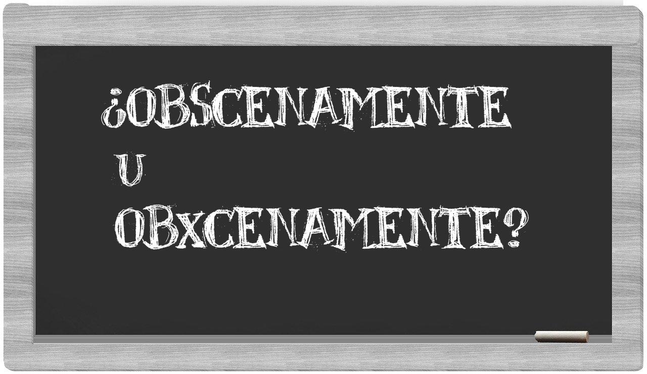 Cuando se presenta la disyuntiva entre obscenamente y obxcenamente, no hay razón para titubear, puesto que solo obscenamente cuenta con la aprobación del Diccionario de la Real Academia Española, mientras que obxcenamente no se encuentra registrado en sus páginas.