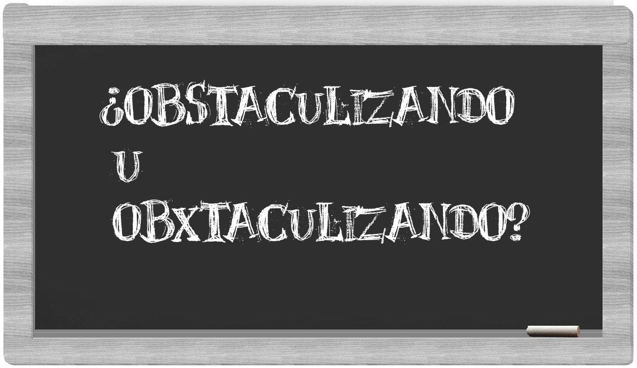 Cuando te enfrentes a la disyuntiva entre obstaculizando y obxtaculizando, no hay lugar para la incertidumbre, porque únicamente obstaculizando es la que se encuentra validada y aceptada, mientras que obxtaculizando no figura en el prestigioso Diccionario de la Real Academia Española.