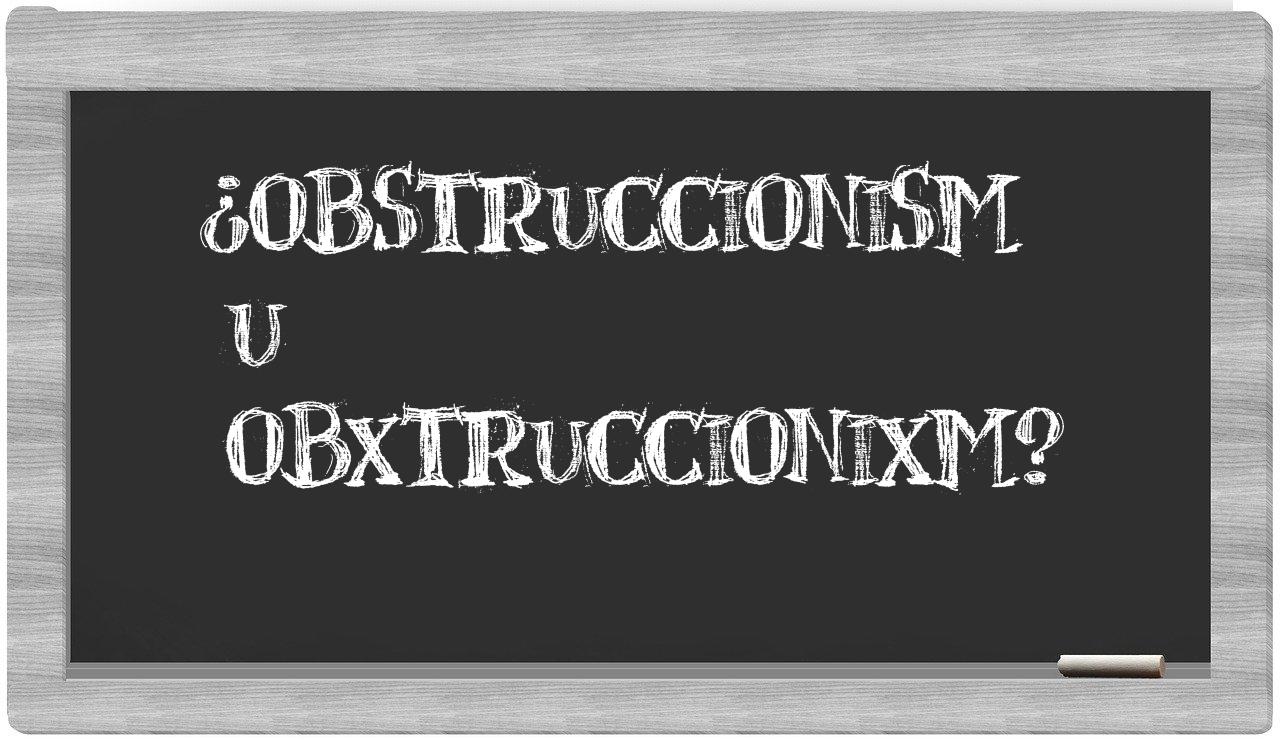 Cuando se presenta la elección entre obstruccionism y obxtruccionixm, es fundamental que estés seguro, puesto que únicamente obstruccionism se encuentra correctamente redactada. La forma obxtruccionixm no se encuentra registrada en el Diccionario de la Real Academia Española.