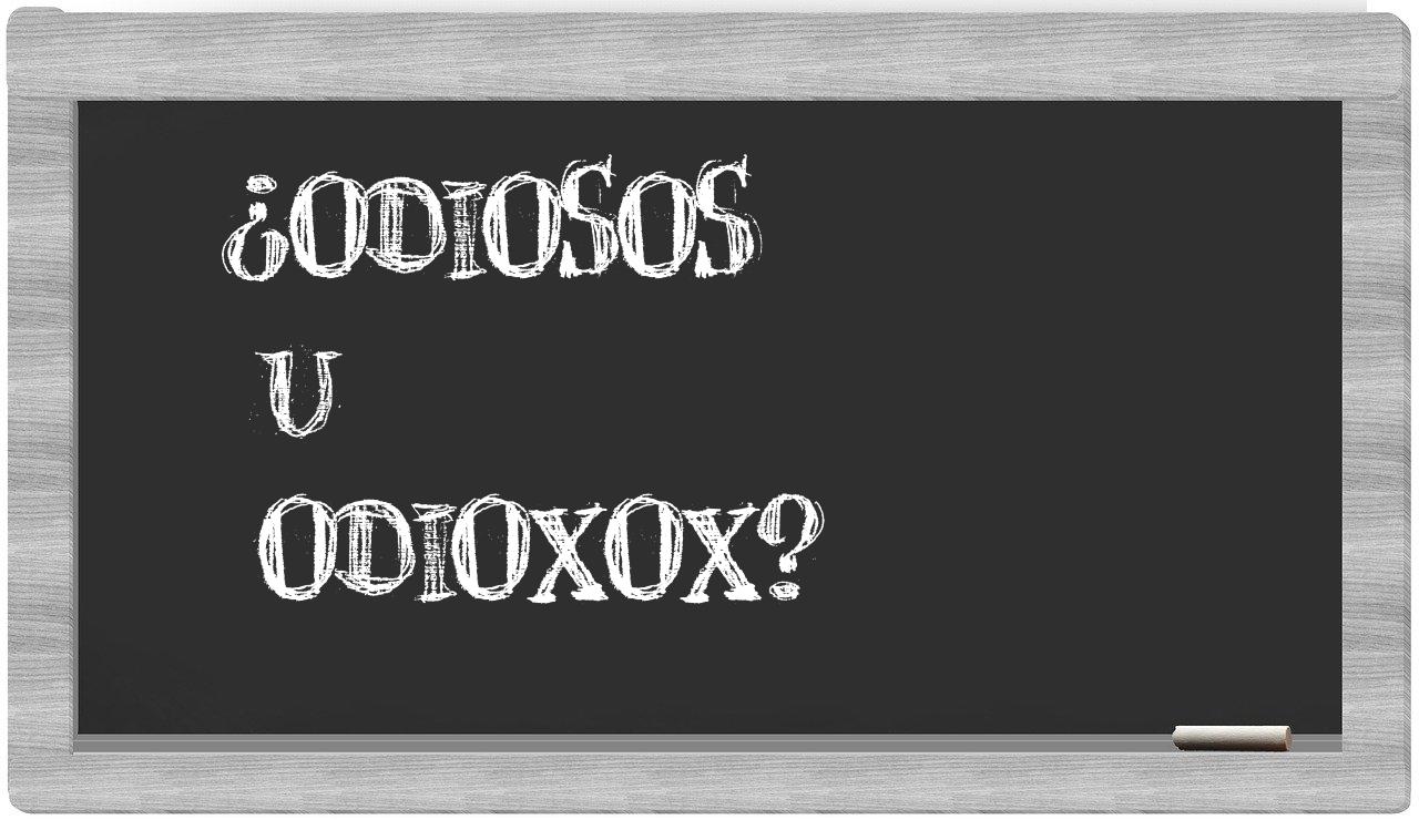 Cuando se presenta la comparación entre odiosos y odioxox, resulta imperativo no titubear, puesto que únicamente odiosos se encuentra debidamente redactada. Por otro lado, odioxox carece de presencia en el Diccionario de la Real Academia Española.