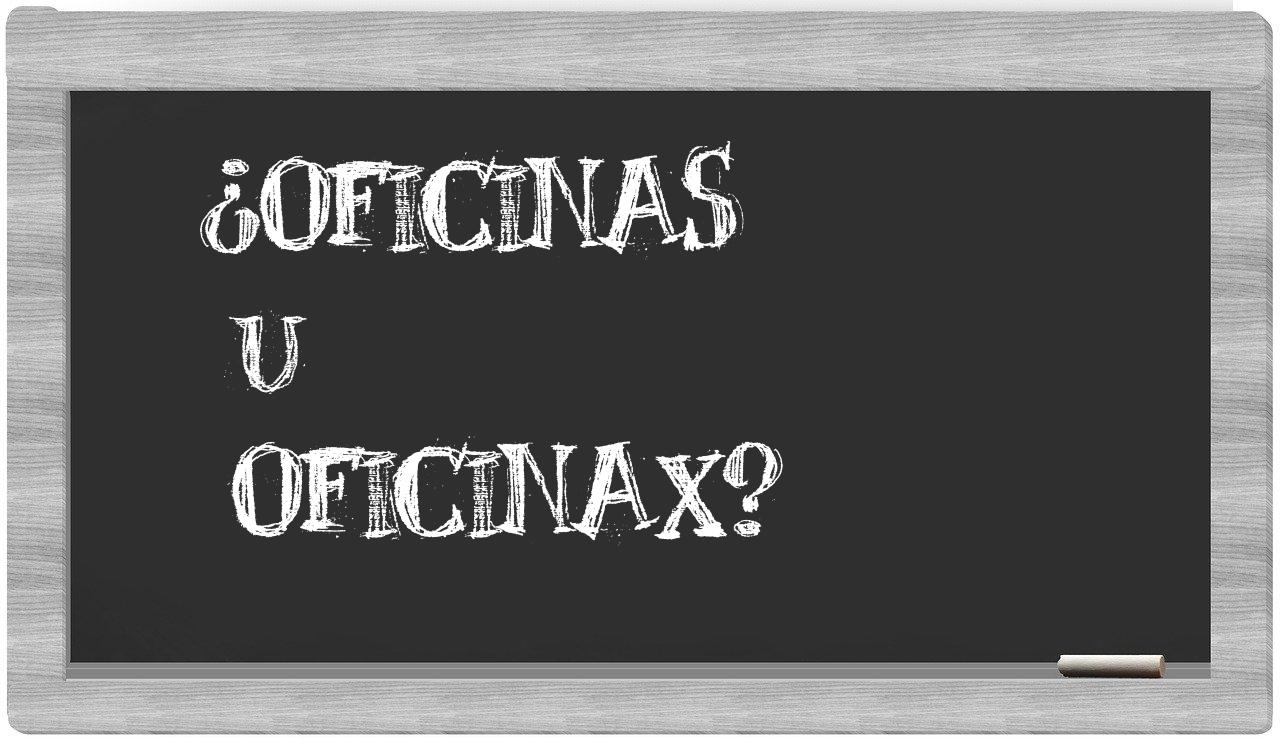 En la comparación entre los términos oficinas y oficinax, no hay lugar para la indecisión, puesto que únicamente oficinas se encuentra correctamente formulada. Por otro lado, oficinax no se halla en el Diccionario de la Real Academia Española.