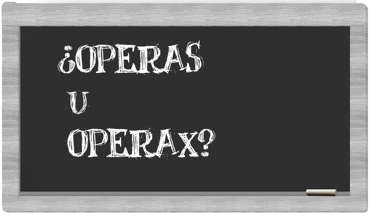 Cuando se trata de la diferencia entre operas y operax, la elección no debe ser motivo de incertidumbre, puesto que únicamente operas es la forma adecuada y reconocida, mientras que operax no se encuentra en el Diccionario de la Real Academia Española.