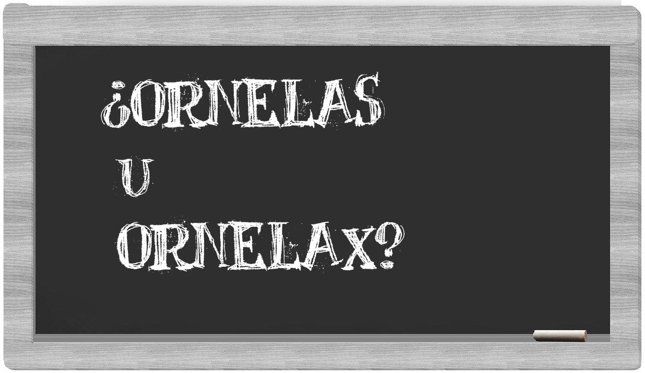 En la particular situación que involucra los términos ornelas y ornelax, no deberías titubear en ningún momento, dado que únicamente ornelas se encuentra correctamente redactada. Por otro lado, ornelax no se halla en el Diccionario de la Real Academia Española.