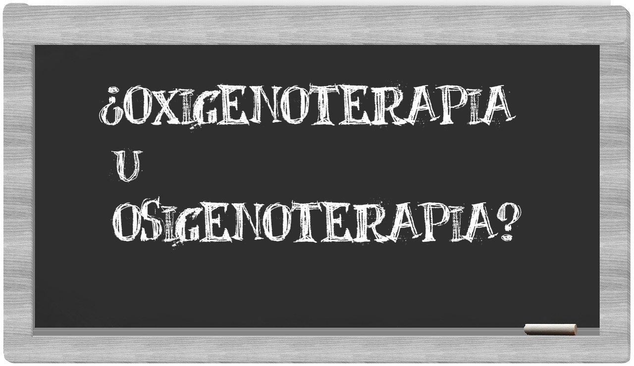 Cuando se trata de decidir entre el término oxigenoterapia y la alternativa osigenoterapia, la elección no puede ser más clara, puesto que oxigenoterapia es la única que se encuentra debidamente registrada en el Diccionario de la Real Academia Española, mientras que osigenoterapia no cuenta con reconocimiento oficial.