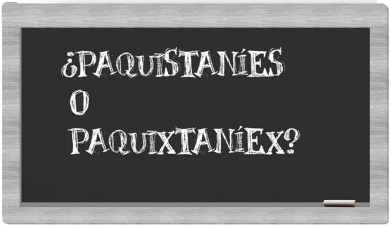 Cuando te encuentres ante la elección entre paquistaníes y paquixtaníex, no vaciles ni un instante, puesto que únicamente paquistaníes se encuentra debidamente registrada y aceptada en el Diccionario de la Real Academia Española, mientras que paquixtaníex carece de reconocimiento oficial.
