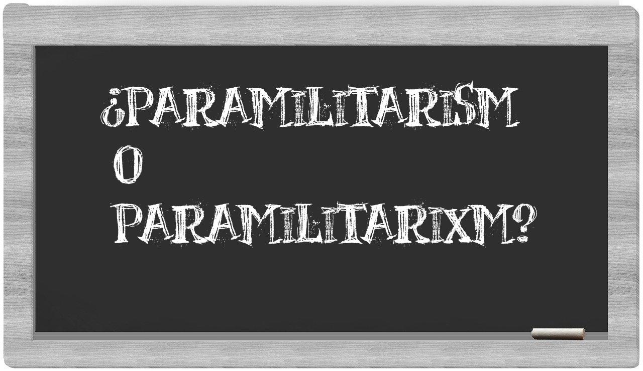 Cuando se presenta la elección entre paramilitarism y paramilitarixm, no hay lugar a la indecisión, pues únicamente paramilitarism es la opción correcta, mientras que paramilitarixm carece de existencia en el diccionario de la Real Academia Española.