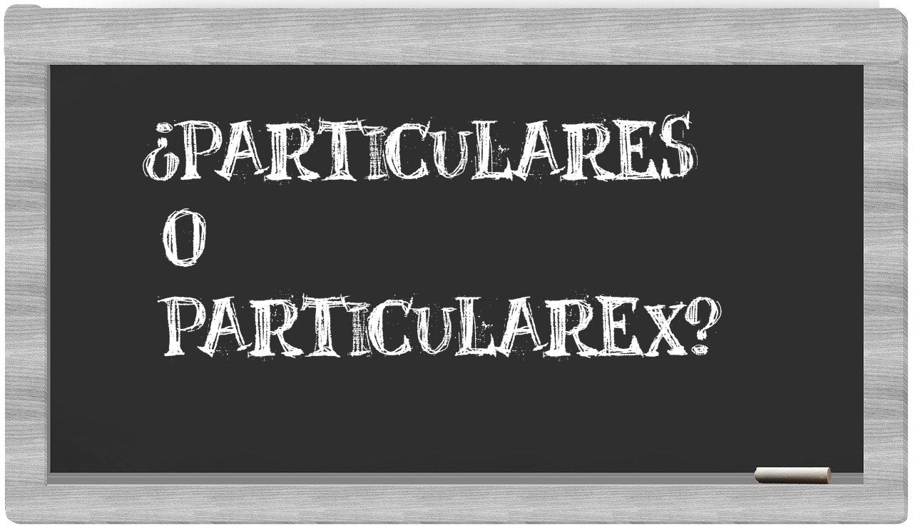 Cuando se trata de la elección entre particulares y particularex, no hay lugar para la incertidumbre, puesto que únicamente particulares se presenta como la forma adecuada; particularex ni siquiera figura en el diccionario de la Real Academia Española.