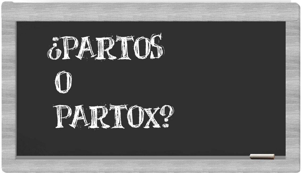 Cuando se trata de la distinción entre partos y partox, no hay motivo para la incertidumbre, puesto que solo partos es la opción correcta. Además, partox no se encuentra registrada en el Diccionario de la Real Academia Española.