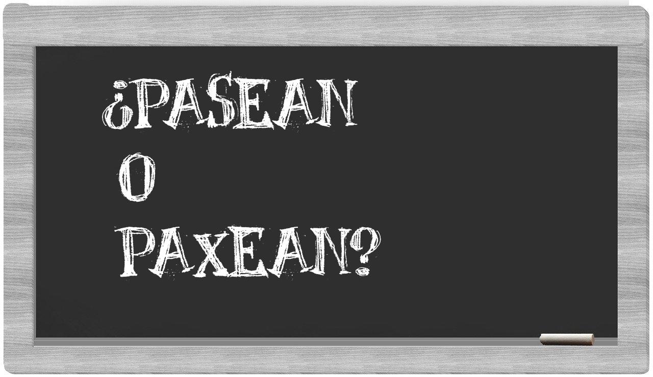 Cuando se trata de las palabras pasean y paxean, no hay lugar para la incertidumbre, puesto que solo pasean se presenta como la opción correcta; de hecho, paxean no figura en el prestigioso Diccionario de la Real Academia de la Lengua.