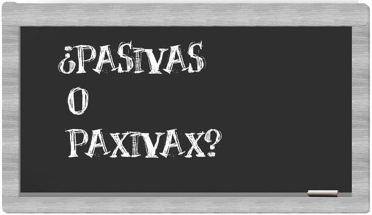 Cuando se trata de escoger entre pasivas y paxivax, la decisión debería ser clara como el agua, dado que únicamente pasivas se encuentra debidamente registrada en el Diccionario de la Real Academia Española, mientras que paxivax no tiene cabida en su prestigiosa colección de términos.
