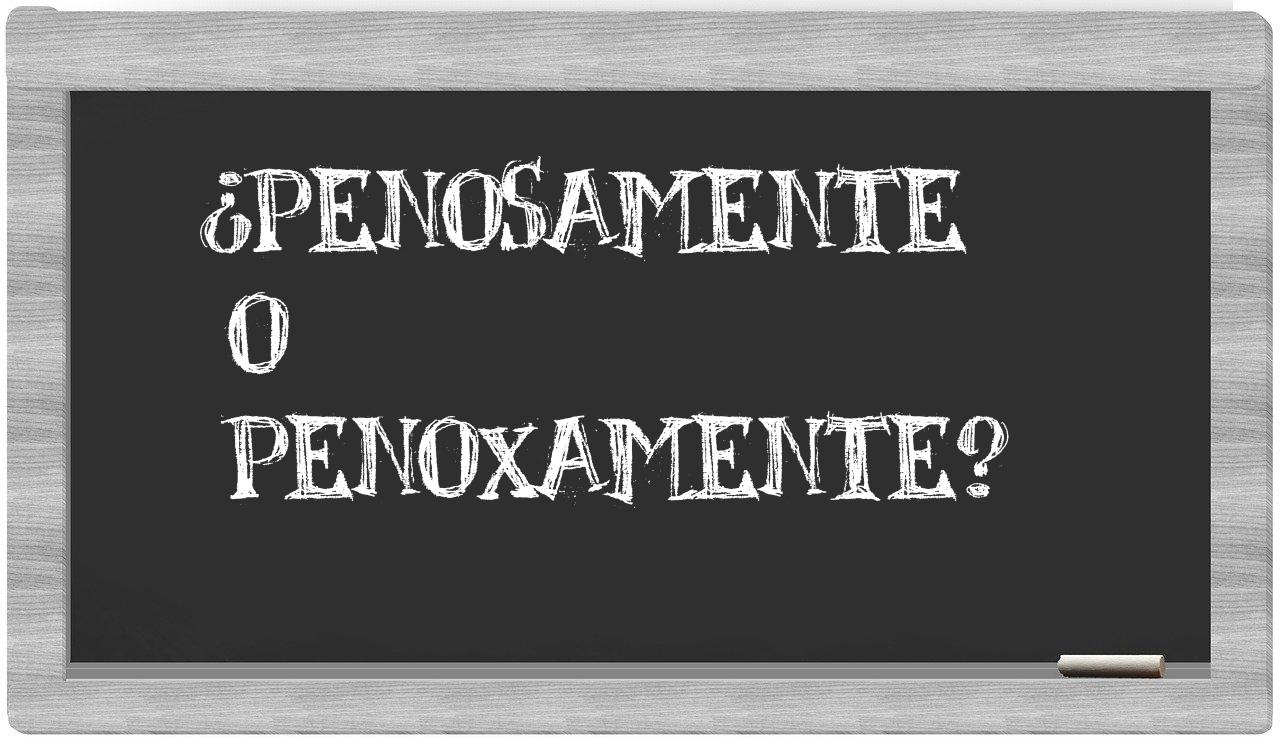 En la situación específica que involucra los términos penosamente y penoxamente, no hay lugar para la incertidumbre, pues únicamente penosamente se presenta como la opción adecuada, mientras que penoxamente carece de reconocimiento en el Diccionario de la Real Academia Española.