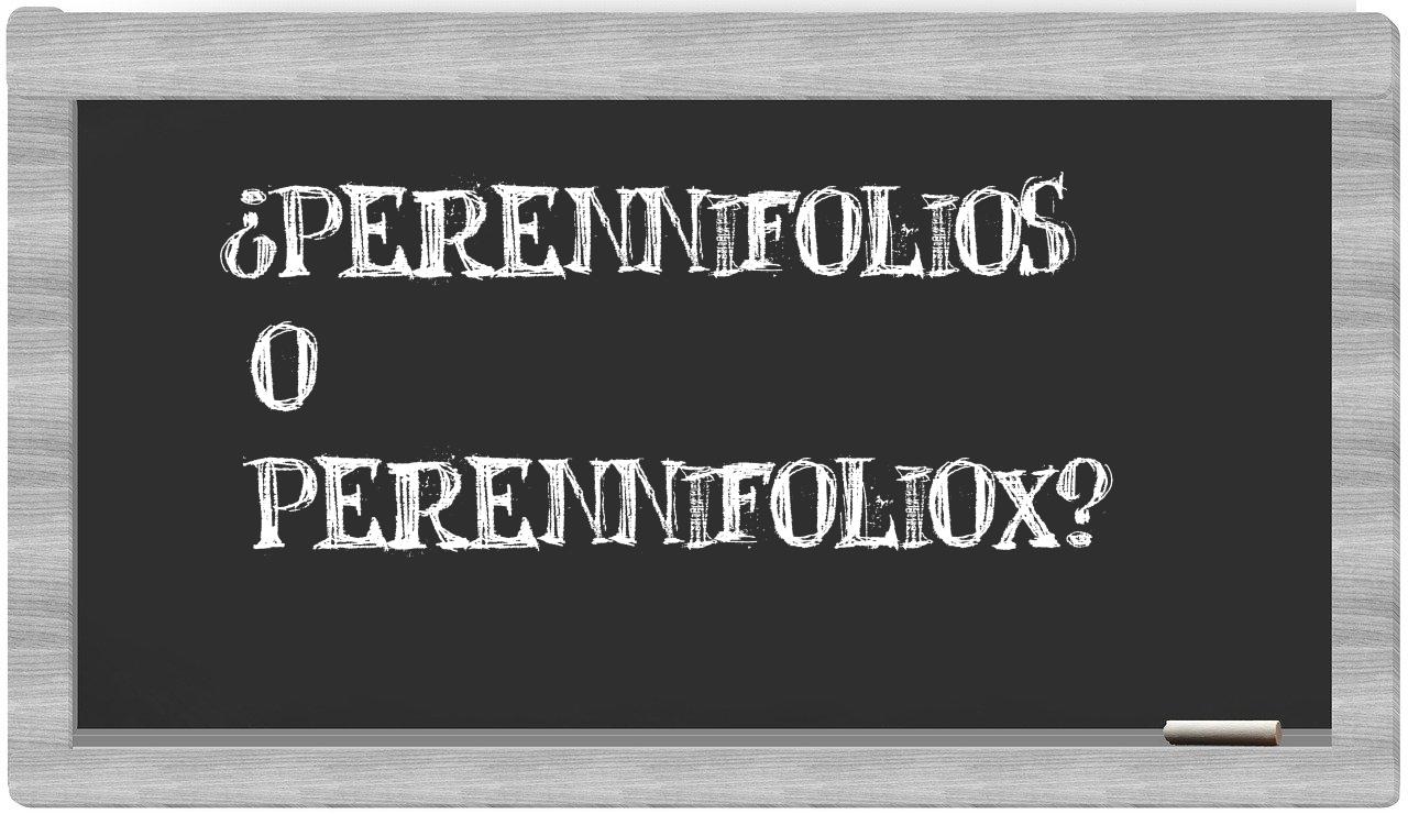 Cuando se trata de la comparación entre los términos perennifolios y perennifoliox, no existe lugar para la incertidumbre, puesto que únicamente perennifolios se encuentra correctamente redactado. Por otro lado, perennifoliox no figura en el prestigioso Diccionario de la Real Academia Española.