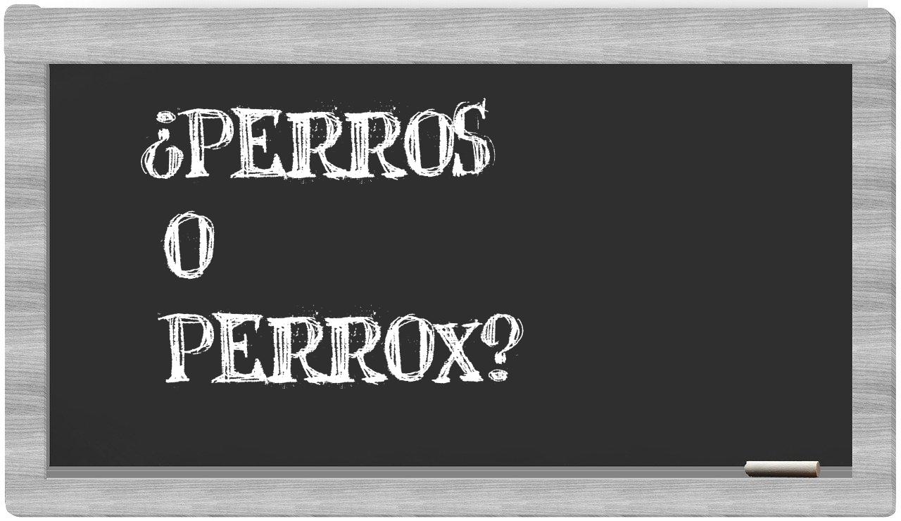 En la situación particular entre los términos perros y perrox nunca deberías titubear, puesto que únicamente perros es el que se encuentra correctamente redactado. Por otro lado, perrox no figura en el léxico de la Real Academia Española.