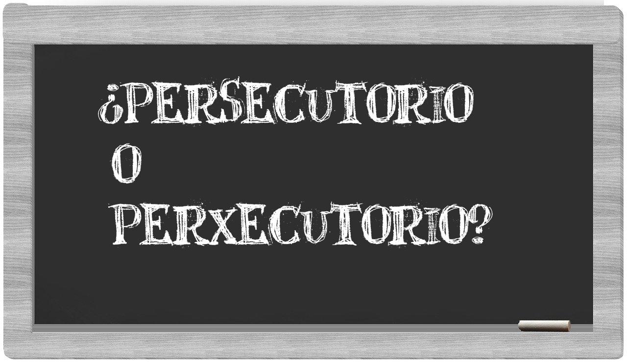 En la situación particular que involucra las palabras persecutorio y perxecutorio, no deberías titubear, porque únicamente persecutorio es la que se encuentra debidamente registrada. La palabra perxecutorio, por otro lado, no figura en el Diccionario de la Real Academia Española.