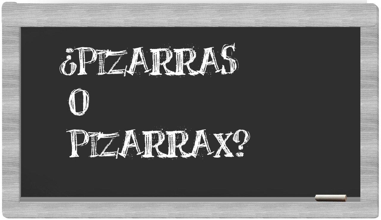 En la particular situación que involucra los términos pizarras y pizarrax, no hay lugar para la incertidumbre, puesto que únicamente pizarras se encuentra correctamente expresada. Por otra parte, pizarrax es completamente ajena al vocabulario registrado en el Diccionario de la Real Academia de la Lengua.