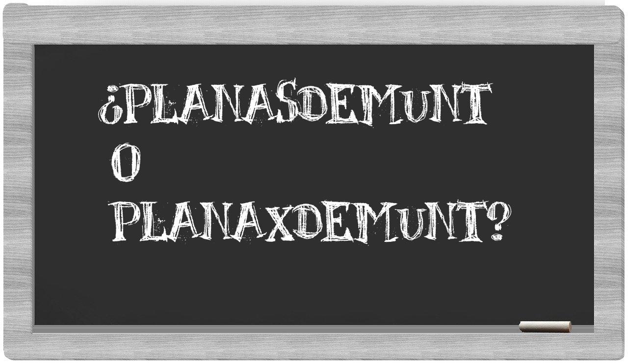 Cuando te enfrentes a la elección entre planasdemunt y planaxdemunt, no vaciles ni un instante, porque únicamente planasdemunt es la forma adecuada, mientras que planaxdemunt no se encuentra registrada en el Diccionario de la Real Academia Española.