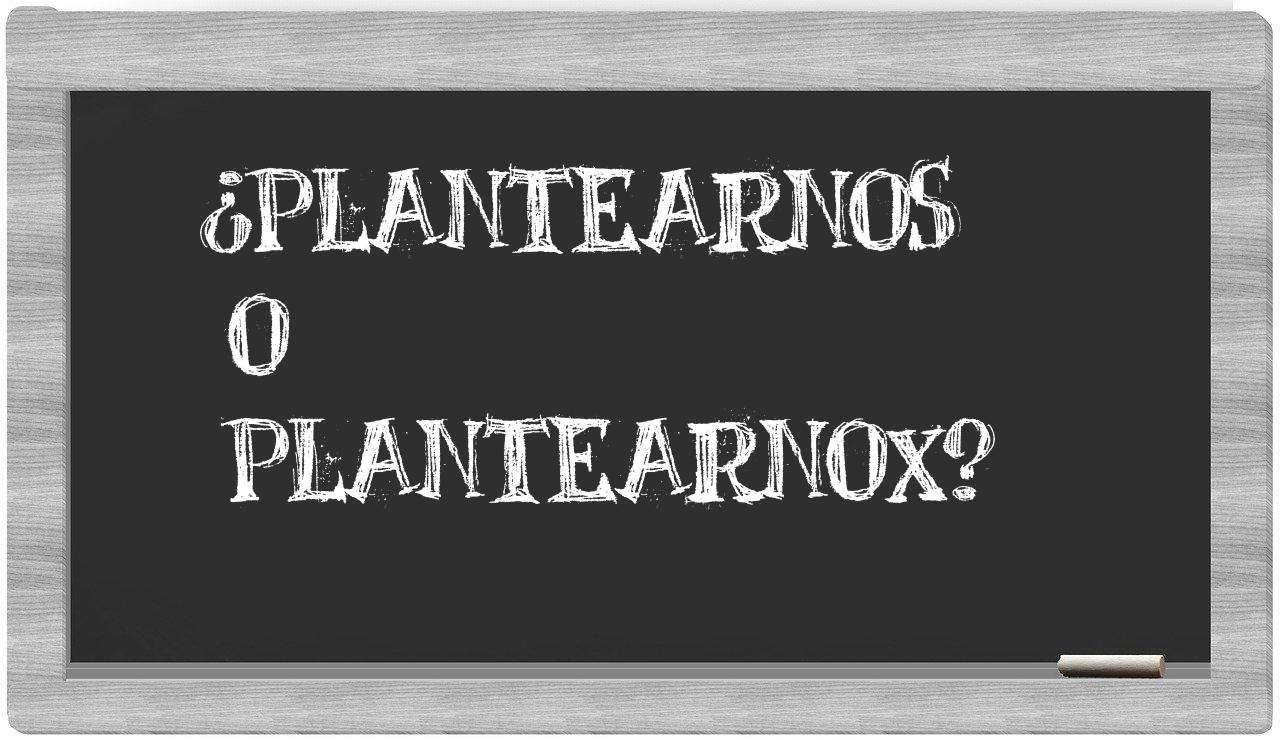 Cuando se presenta la elección entre plantearnos y plantearnox, la decisión debe ser clara y sin titubeos, puesto que únicamente plantearnos es la forma adecuada. Por otro lado, plantearnox no figura en el Diccionario de la Real Academia Española.