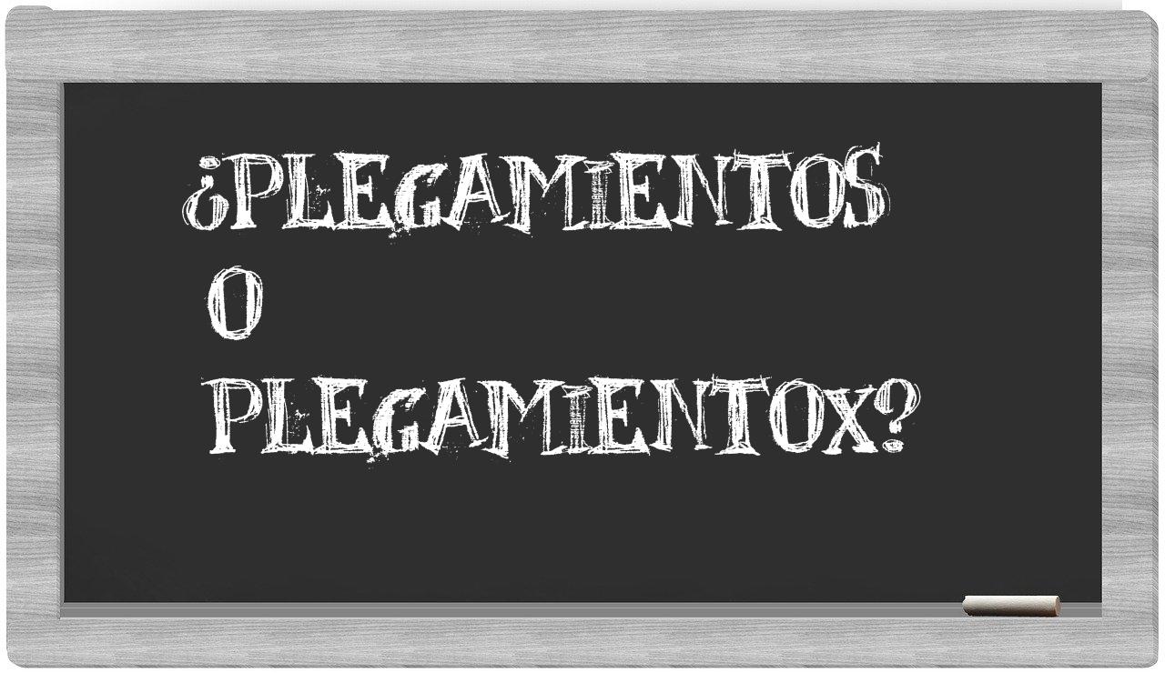 Cuando se presenta la disyuntiva entre plegamientos y plegamientox, es fundamental no vacilar, dado que únicamente plegamientos es la que se encuentra adecuadamente redactada. Por su parte, plegamientox no figura en el glosario de la Real Academia Española.