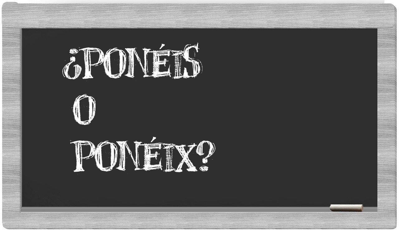 Cuando se trata de la elección entre ponéis y ponéix, no hay lugar para la incertidumbre, puesto que únicamente ponéis se presenta como la forma adecuada, mientras que ponéix carece de legitimidad en el Diccionario de la Real Academia Española.