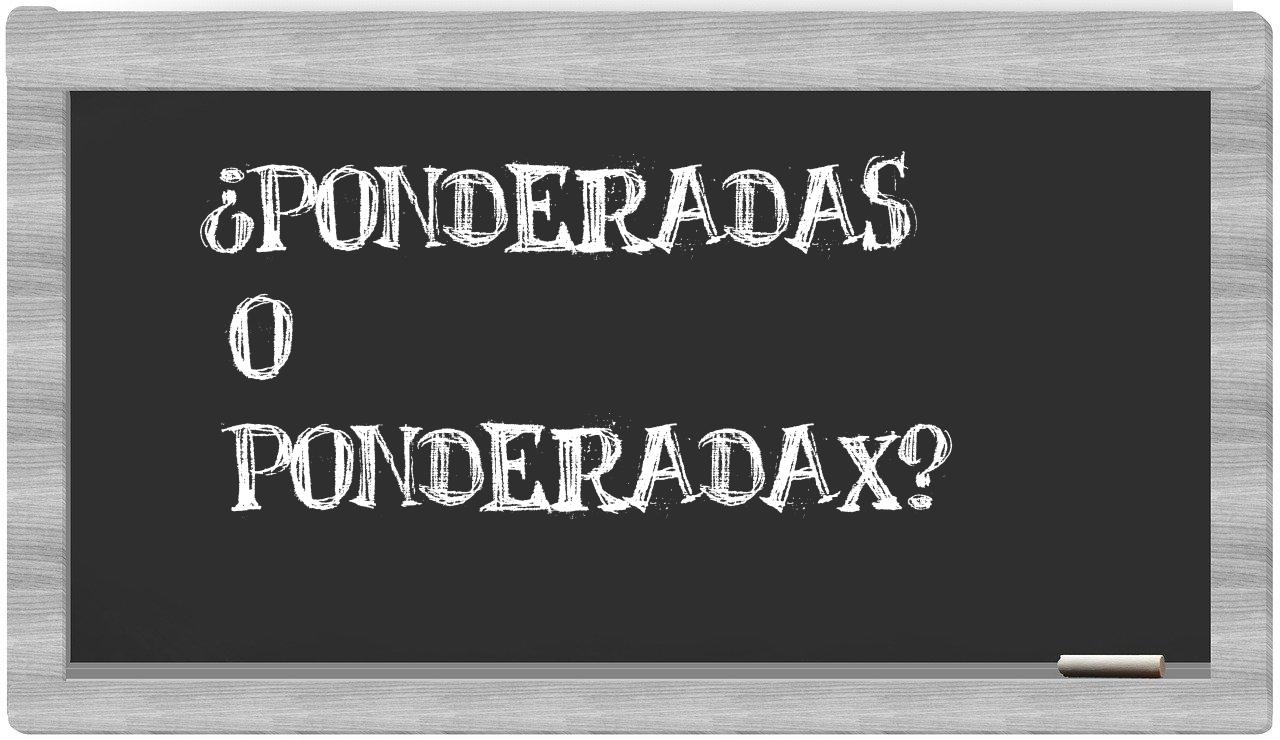 Cuando se presenta la disyuntiva entre ponderadas y ponderadax, es fundamental que no haya incertidumbre, puesto que únicamente ponderadas es la forma adecuada. Por otro lado, ponderadax no se encuentra registrada en el Diccionario de la Real Academia Española.