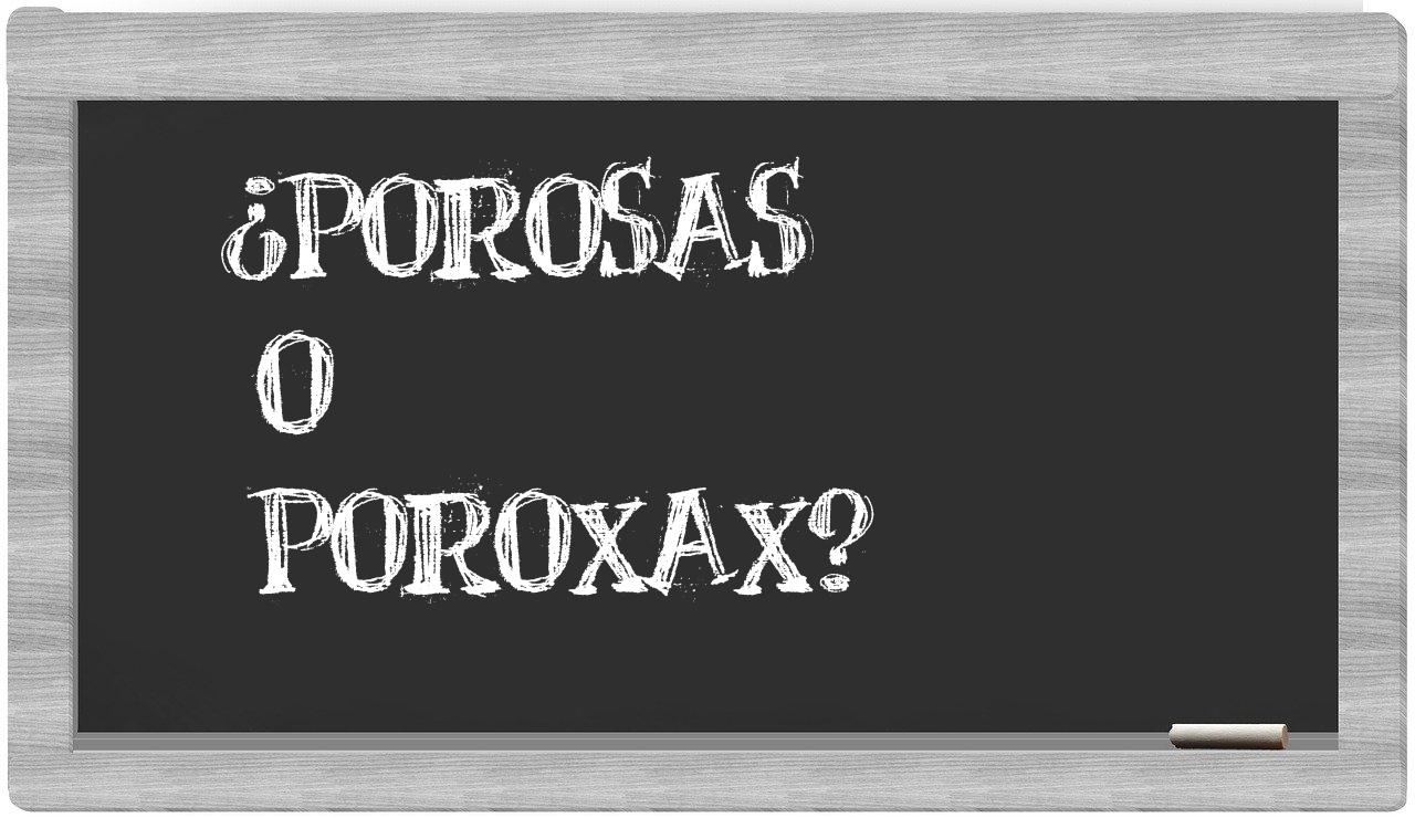 Cuando se presenta la situación que involucra los términos porosas y poroxax, es fundamental que no existan titubeos en tu elección, puesto que únicamente porosas se encuentra registrada de manera adecuada. Por otro lado, poroxax carece de presencia en el Diccionario de la Real Academia Española.