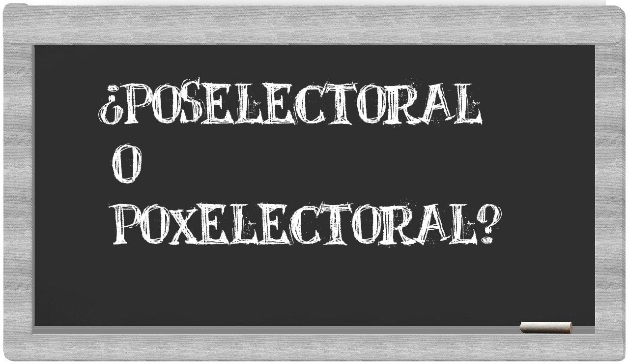 La mezcla entre poselectoral y poxelectoral suele surgir, en gran parte, por su semejanza en la pronunciación. En la mayoría de las variantes del español, ambas palabras se articulan de forma prácticamente indistinguible, lo que puede inducir a un error al creer que se escriben de igual forma. Sin embargo, la forma correcta de escribir cada una está determinada por su origen etimológico y por las normativas específicas de la lengua española.