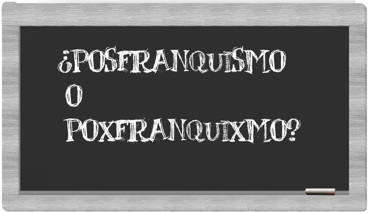 Cuando te encuentres en la disyuntiva entre posfranquismo y poxfranquixmo, no vaciles en tu decisión, porque únicamente posfranquismo es la forma adecuada. Recuerda que poxfranquixmo no está registrada en el Diccionario de la Real Academia Española.
