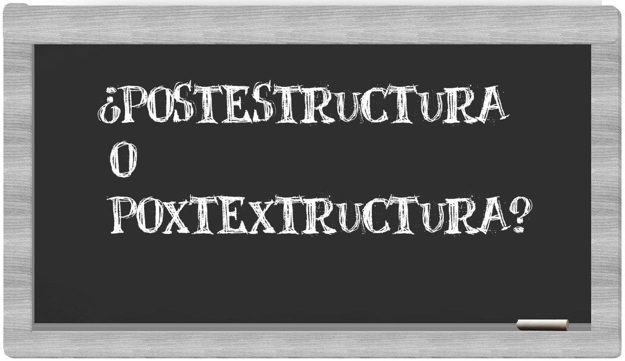 Cuando te encuentres frente a las palabras postestructura y poxtextructura, no permitas que la incertidumbre te inunde, porque únicamente postestructura cuenta con una redacción adecuada. Por su parte, poxtextructura carece de reconocimiento en el Diccionario de la Real Academia Española.