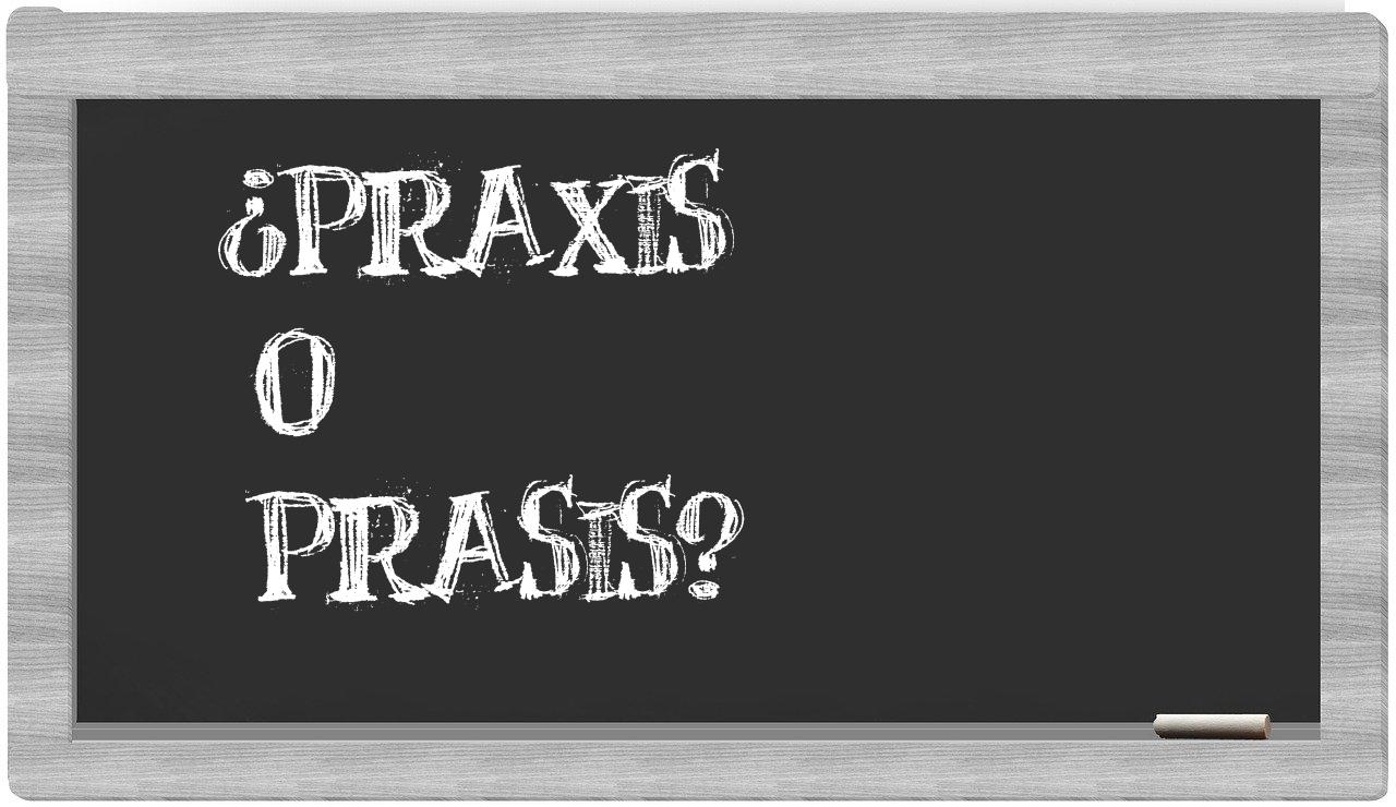 Cuando se confrontan los términos praxis y prasis, es fundamental no titubear, puesto que solo praxis es la opción adecuada y correcta; por otro lado, prasis carece de presencia en el Diccionario de la Real Academia Española.