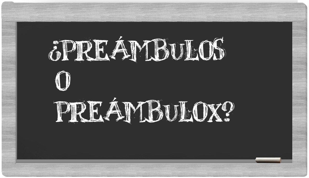 En la situación específica que involucra las palabras preámbulos y preámbulox, es importante que no vaciles, puesto que únicamente preámbulos se encuentra registrada de manera apropiada. Por otro lado, preámbulox no figura en el Diccionario de la Real Academia Española.