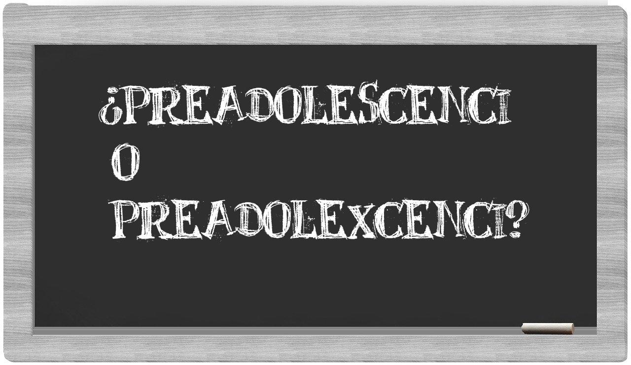 En la particular situación entre los términos preadolescenci y preadolexcenci, es fundamental no titubear, puesto que únicamente preadolescenci se presenta de manera adecuada. Por su parte, preadolexcenci no se encuentra recogido en el Diccionario de la Real Academia Española.