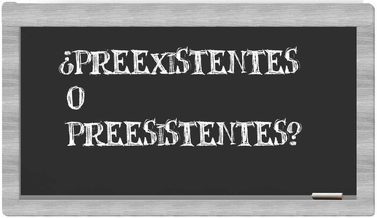 En la situación específica que involucra los términos preexistentes y preesistentes, no deberías titubear en ningún momento, puesto que únicamente preexistentes se encuentra adecuadamente redactada. En cambio, preesistentes carece de reconocimiento en el Diccionario de la Real Academia Española.
