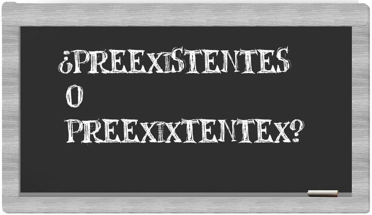 Cuando se trata de la distinción entre preexistentes y preexixtentex, la elección es evidente, puesto que únicamente preexistentes se encuentra correctamente formulada. Cabe mencionar que preexixtentex no figura en el prestigioso Diccionario de la Real Academia Española.