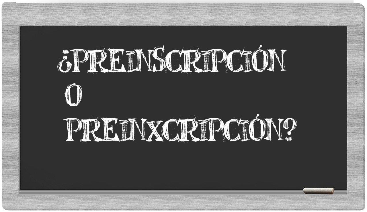 En la particular circunstancia que se presenta entre los términos preinscripción y preinxcripción, nunca deberías titubear, puesto que únicamente preinscripción se encuentra correctamente redactado. Por otro lado, preinxcripción no se halla en el léxico de la Real Academia Española.