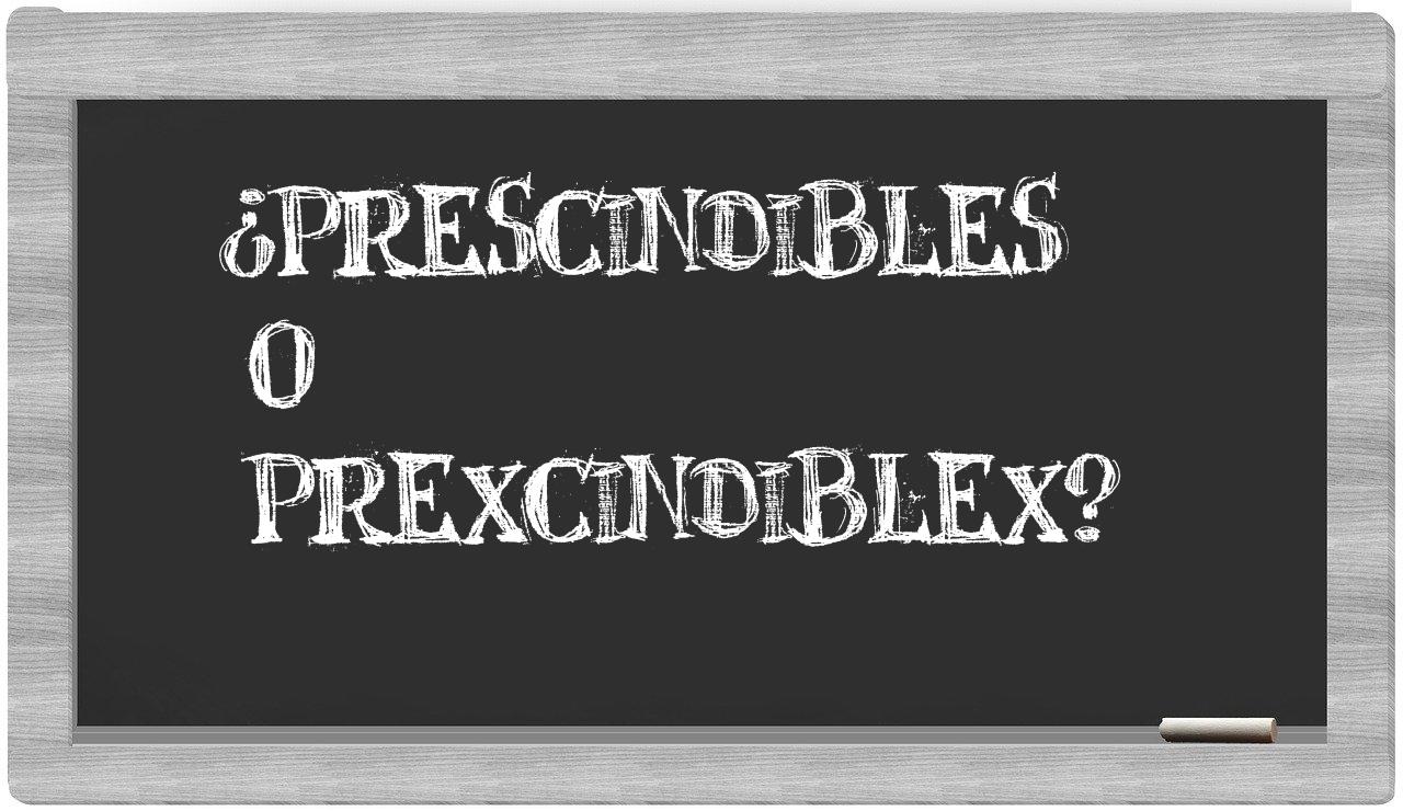 Cuando se trata de la elección entre prescindibles y prexcindiblex, no hay lugar para la incertidumbre, puesto que únicamente prescindibles se presenta como la forma adecuada; prexcindiblex ni siquiera figura en el diccionario de la Real Academia Española.