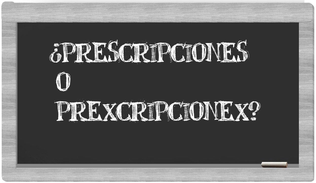 Cuando se trata de la elección entre los términos prescripciones y prexcripcionex, no deberías tener ninguna incertidumbre, puesto que solo prescripciones se encuentra debidamente registrada en el Diccionario de la Real Academia Española, mientras que prexcripcionex carece de reconocimiento oficial.
