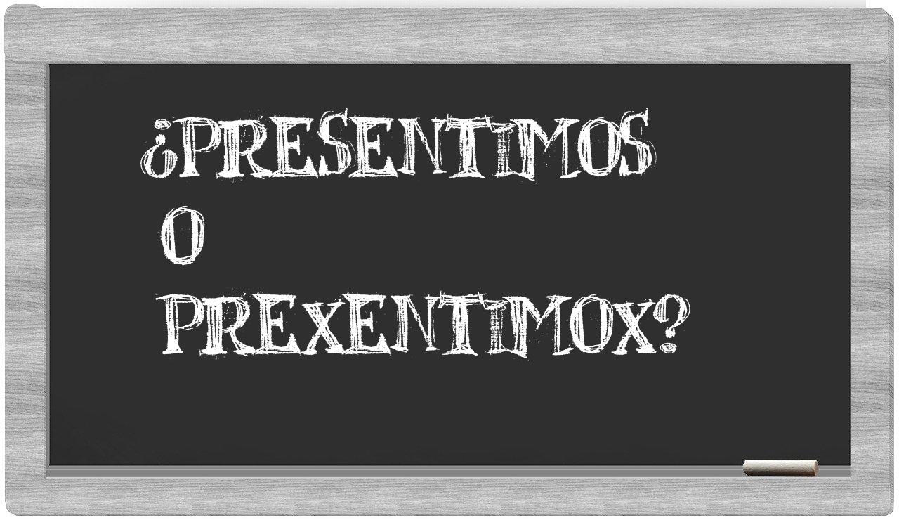 Cuando se trata de elegir entre presentimos y prexentimox, la decisión es evidente, puesto que solo presentimos refleja la forma adecuadamente registrada, mientras que prexentimox no se encuentra en el repertorio del Diccionario de la Real Academia Española.