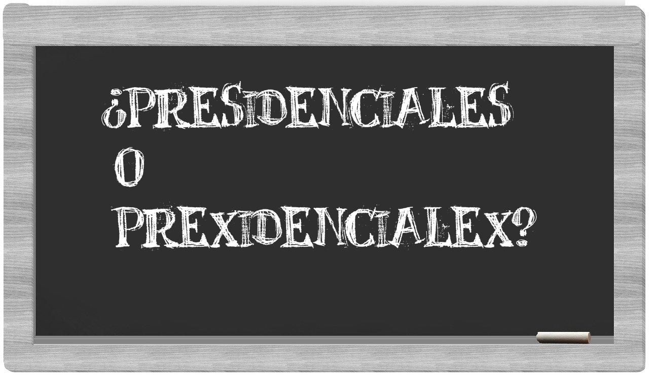 Cuando te sitúas ante la disyuntiva entre presidenciales y prexidencialex, no existe motivo alguno para titubear, dado que únicamente presidenciales es la opción correctamente asentada en el idioma, mientras que prexidencialex carece de reconocimiento en el Diccionario de la Real Academia Española.