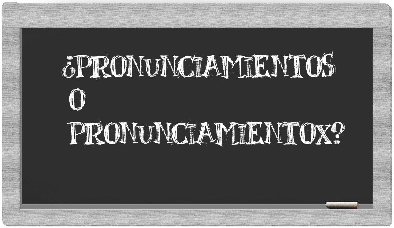 Cuando se trata de distinguir entre pronunciamientos y pronunciamientox, la elección es clara y no debería suscitar inseguridades, dado que únicamente pronunciamientos figura adecuadamente en el Diccionario de la Real Academia Española, mientras que pronunciamientox carece de reconocimiento oficial.