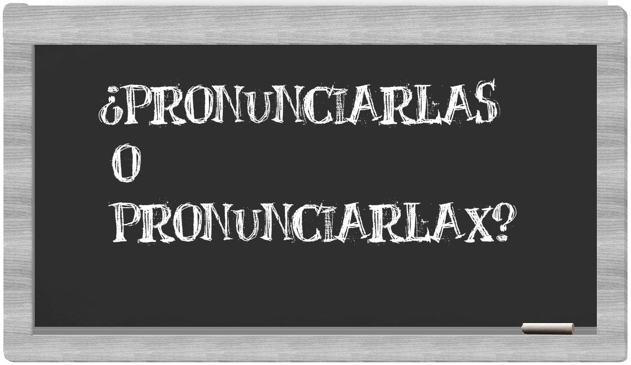 Cuando se trata de la distinción entre pronunciarlas y pronunciarlax, es crucial que no dejes espacio a las indecisiones, puesto que exclusivamente pronunciarlas se encuentra debidamente registrada en el Diccionario de la Real Academia Española, mientras que pronunciarlax no tiene cabida alguna en él.