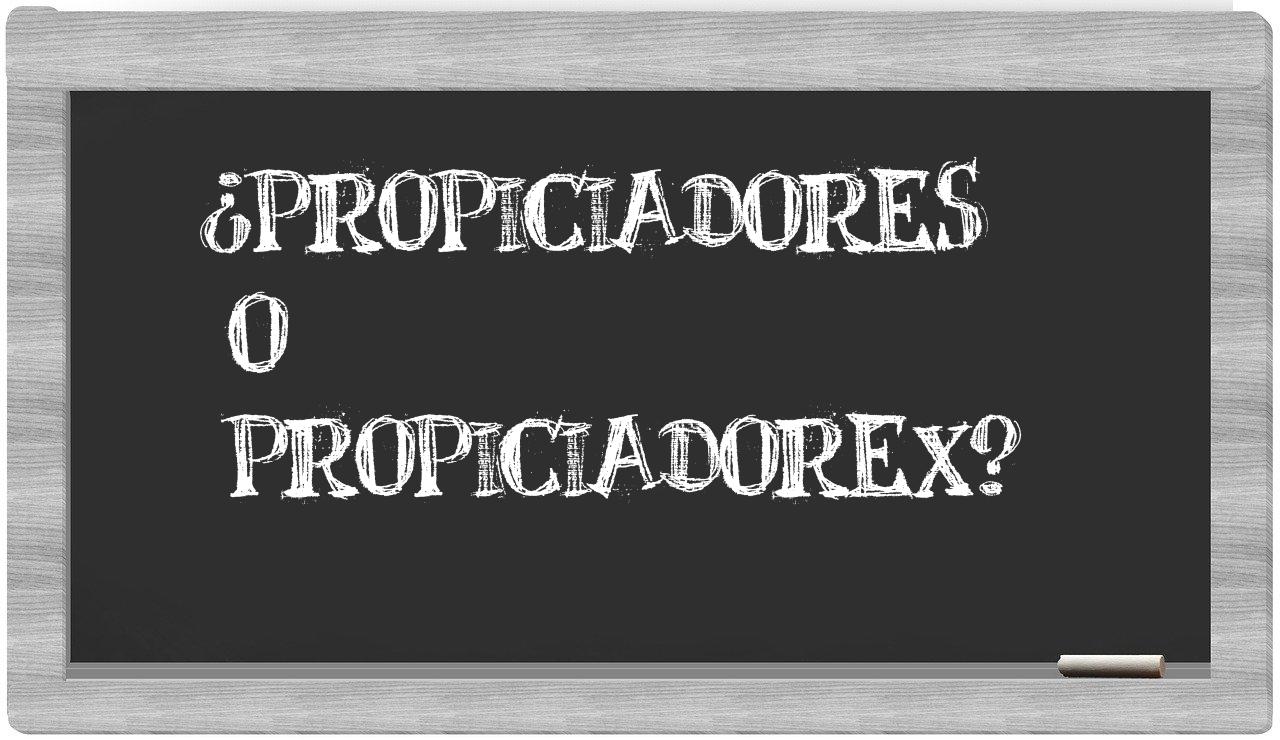 Cuando se presenta la elección entre el término propiciadores y el término propiciadorex, no deberías experimentar incertidumbre, puesto que únicamente propiciadores se encuentra debidamente registrado en el Diccionario de la Real Academia Española, mientras que propiciadorex carece de reconocimiento oficial en dicho compendio lingüístico.