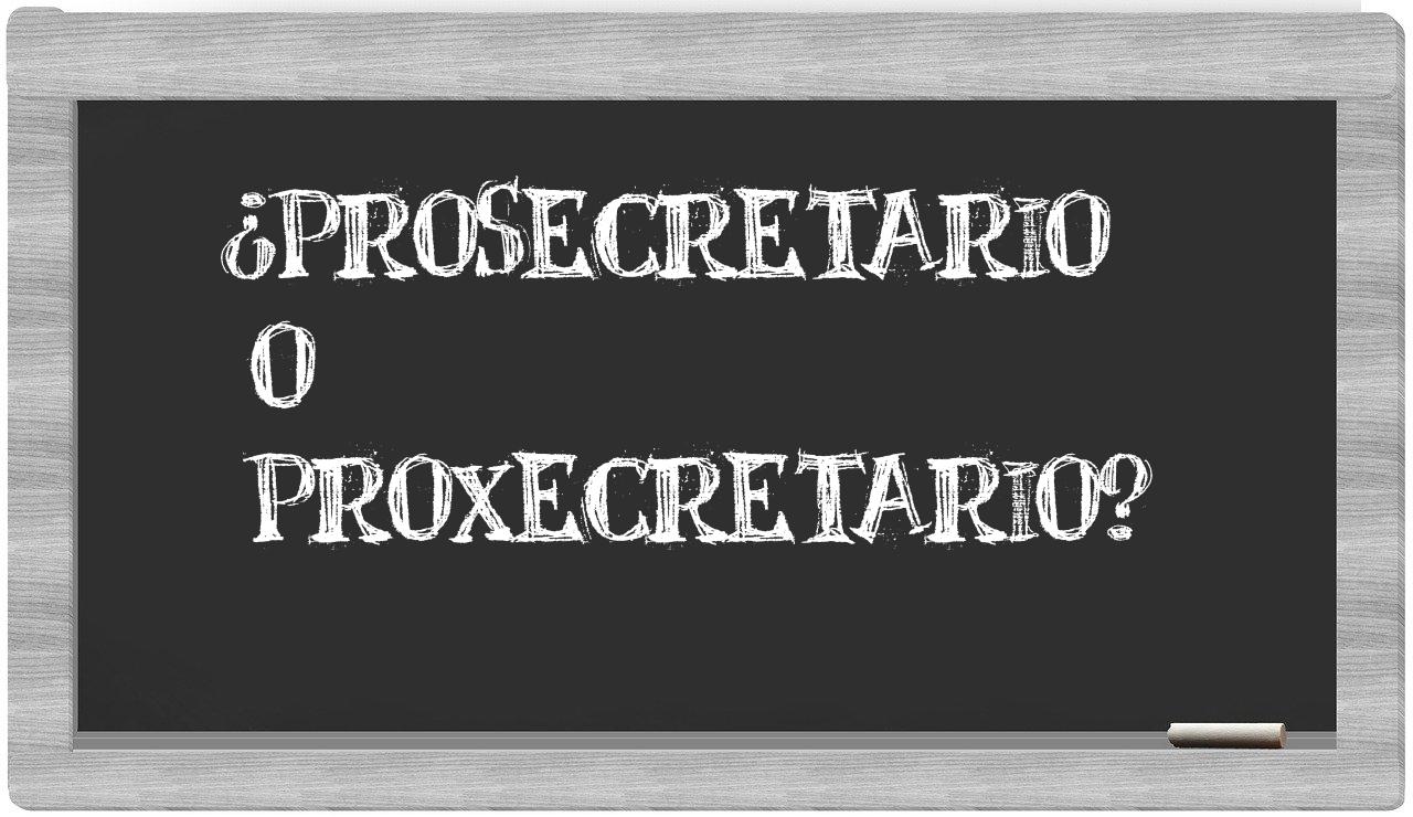 En la particularidad que rodea a las voces prosecretario y proxecretario, nunca deberías titubear, porque es únicamente prosecretario la que se presenta de manera adecuada. La forma proxecretario no figura en el Diccionario de la Real Academia Española.
