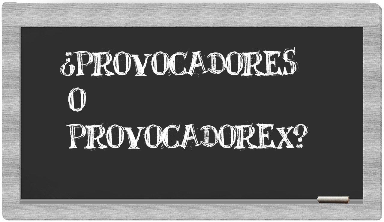 Cuando se presenta la comparación entre provocadores y provocadorex, no debería haber lugar a la incertidumbre, puesto que únicamente provocadores se encuentra validada como una forma correcta. Por otro lado, provocadorex no figura en el Diccionario de la Real Academia Española.