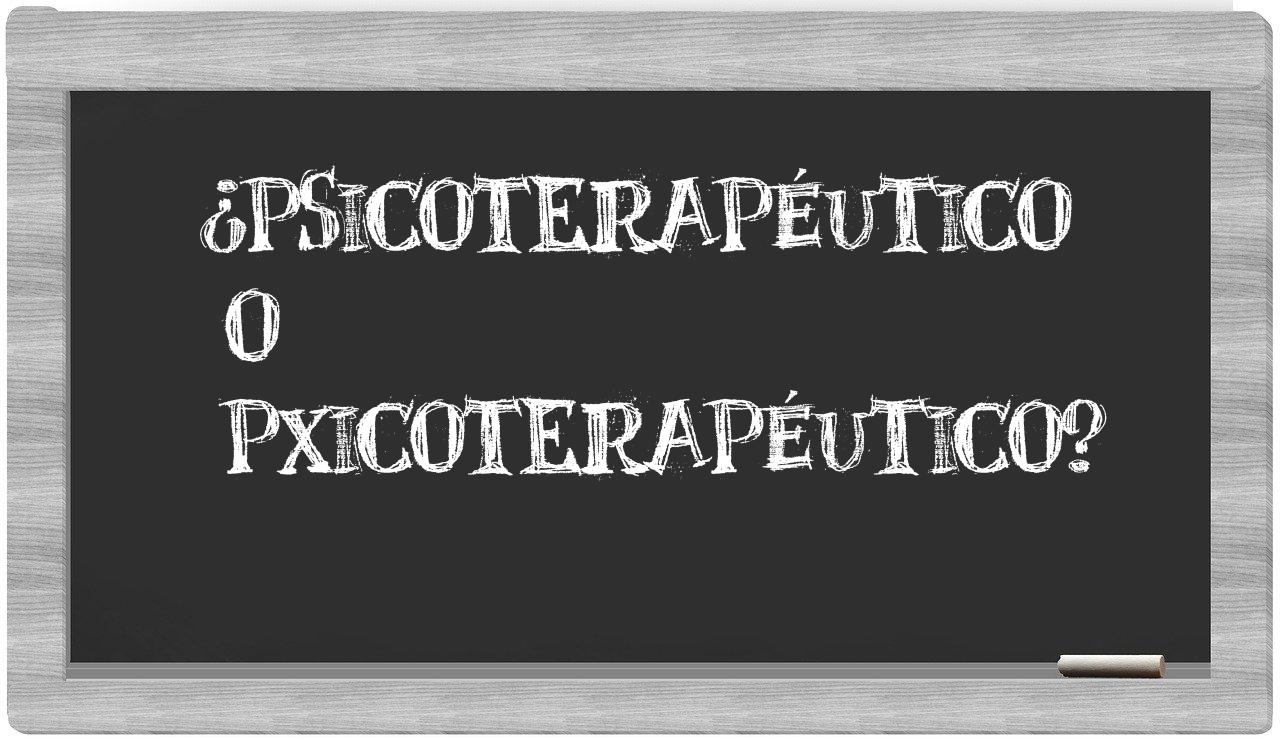 Cuando se presenta la comparación entre psicoterapéutico y pxicoterapéutico, no hay lugar para la incertidumbre, pues únicamente psicoterapéutico se encuentra registrada de manera adecuada en el léxico oficial, mientras que pxicoterapéutico no forma parte del repertorio de términos válidos según la Real Academia de la Lengua.