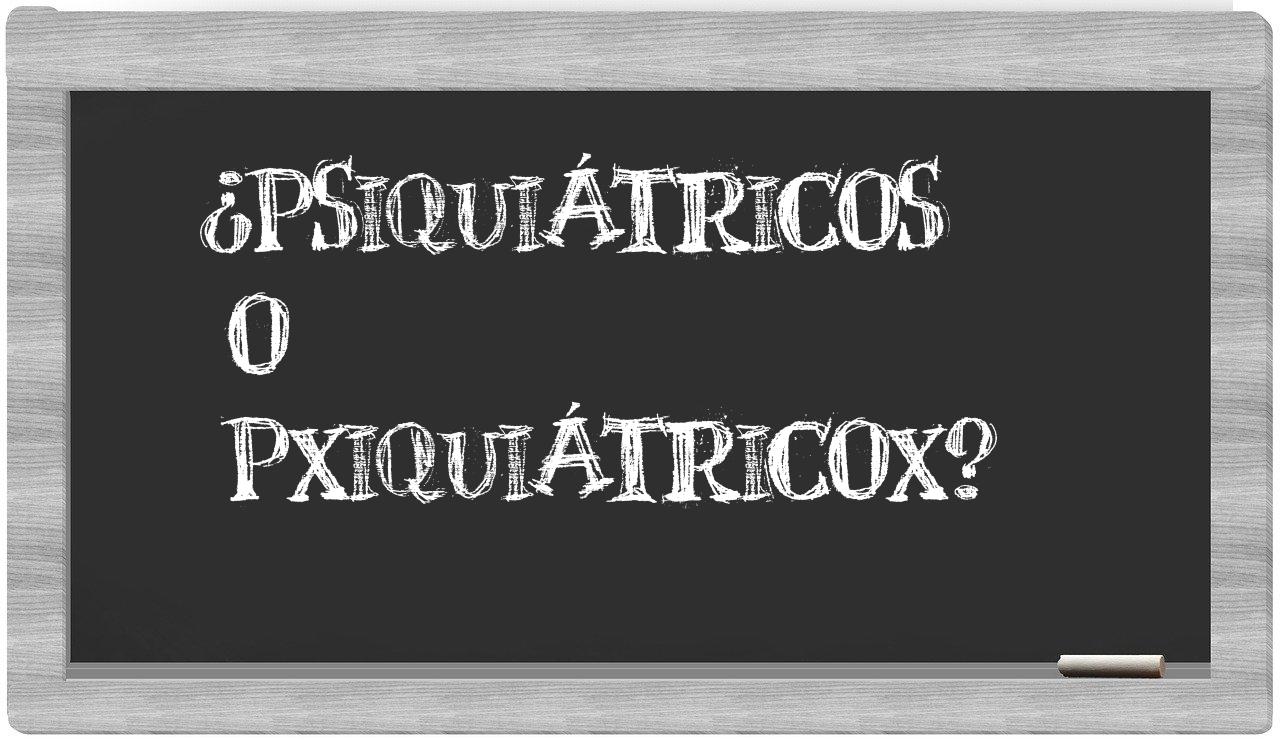 En la situación particular que involucra los términos psiquiátricos y pxiquiátricox, no deberías titubear en absoluto, puesto que únicamente psiquiátricos es la forma adecuada, mientras que pxiquiátricox carece de presencia en el Diccionario de la Real Academia Española.