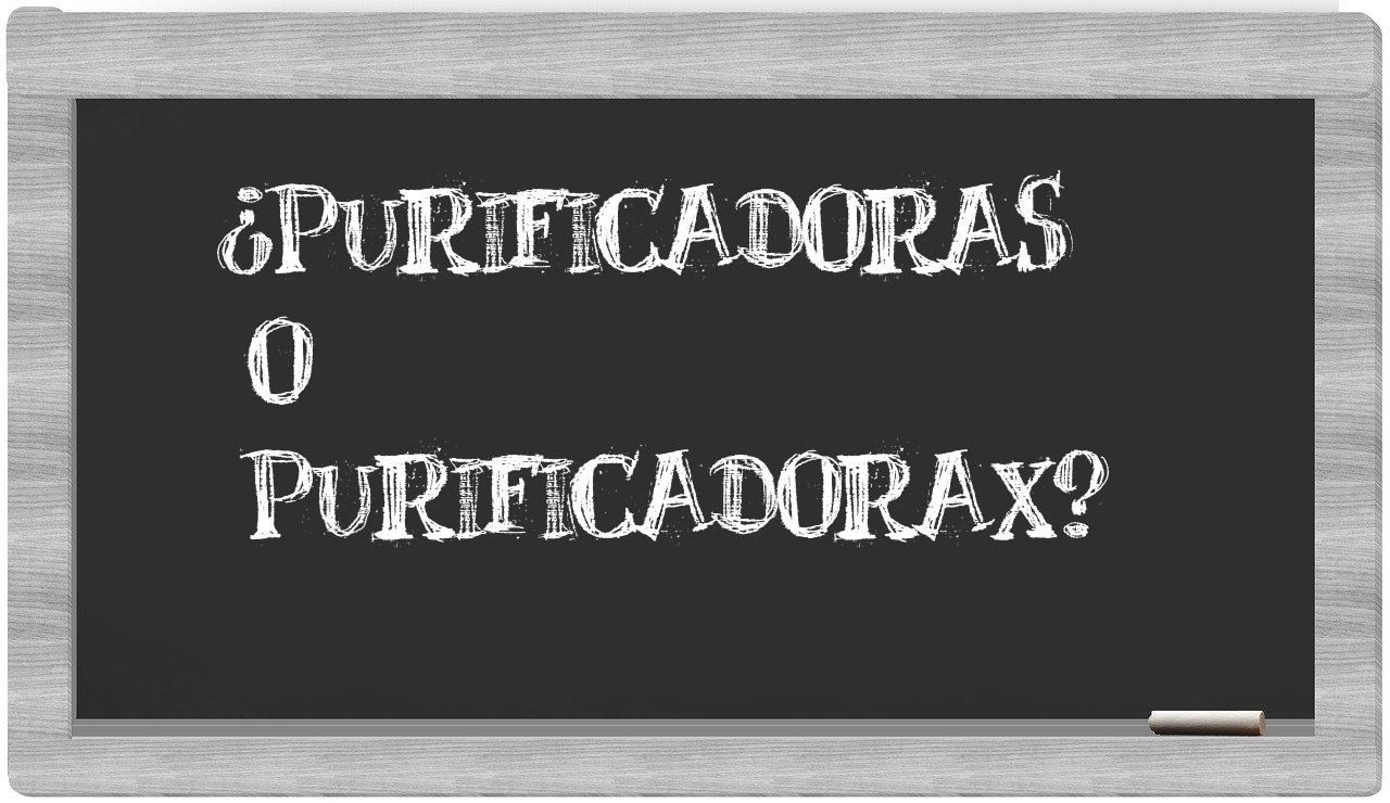 En la situación específica que involucra los términos purificadoras y purificadorax, nunca deberías titubear, puesto que únicamente purificadoras se encuentra debidamente registrada. Por otro lado, purificadorax no figura en el Diccionario de la Real Academia Española.