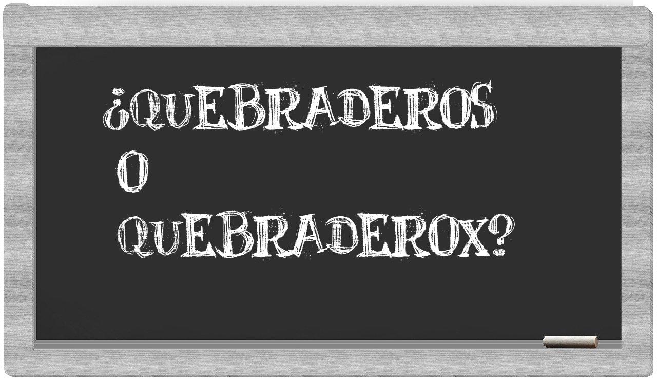 Cuando se trata de discernir entre quebraderos y quebraderox, es fundamental no titubear, puesto que únicamente quebraderos se presenta con la ortografía adecuada; por otro lado, quebraderox se encuentra ausente en el Diccionario de la Real Academia Española.