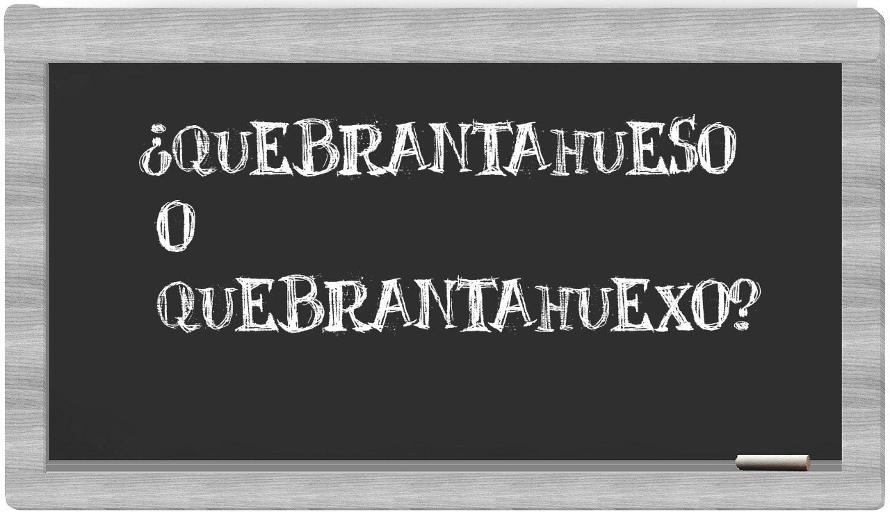 En la situación específica que involucra los términos quebrantahueso y quebrantahuexo, no deberías titubear en absoluto, porque únicamente quebrantahueso es la forma adecuada. Por otro lado, quebrantahuexo no se encuentra registrado en el Diccionario de la Real Academia Española.