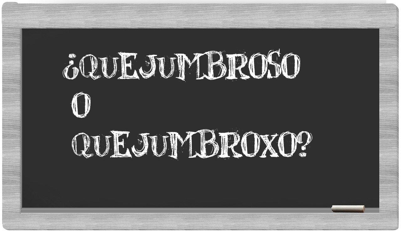 En la situación particular donde se confrontan los términos quejumbroso y quejumbroxo, es fundamental que no vaciles, pues únicamente quejumbroso se encuentra correctamente redactada, mientras que quejumbroxo no figura en el repertorio del Diccionario de la Real Academia Española.